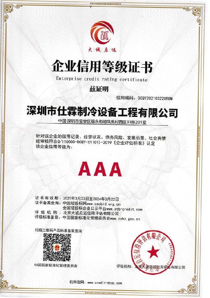 AAA級企業(yè)信用等級